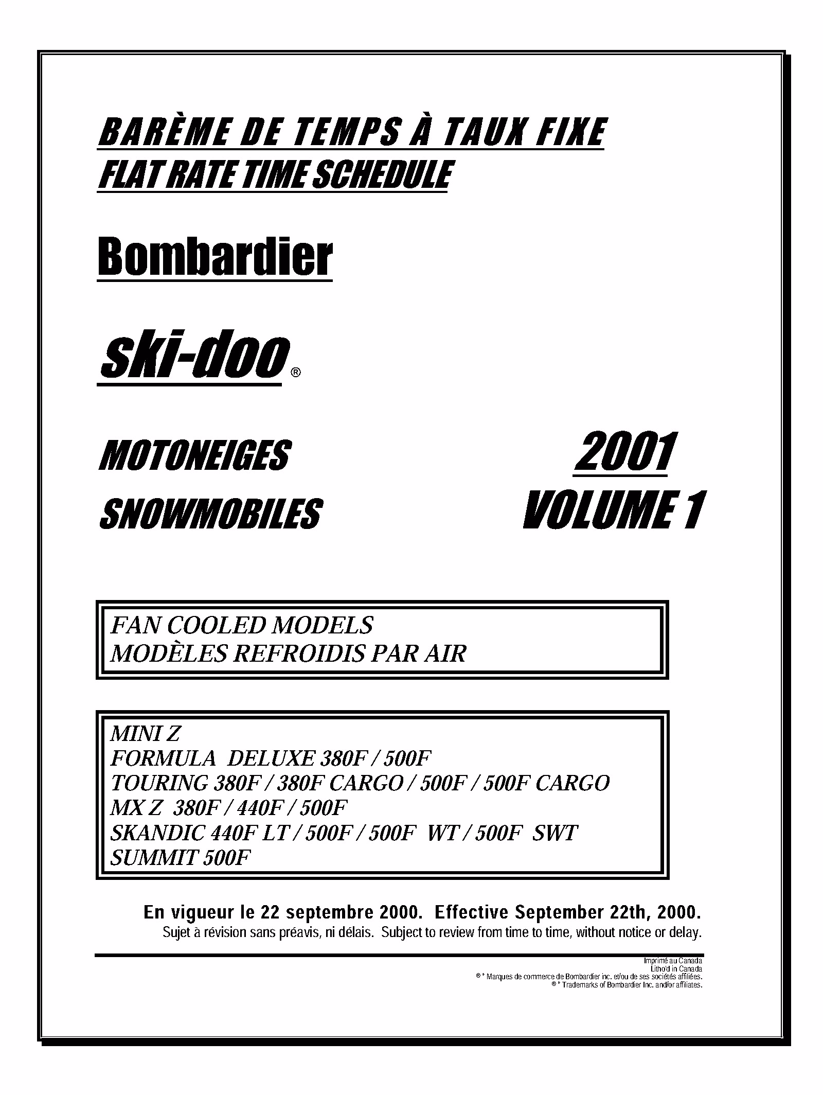 2001 Ski-Doo Snowmobiles Parts Catalog, Racing Handbook, Available Kits, Safety Handbook, Flat Rate Schedule, Specifications Booklet, Operators Guide PDF Manuals Download